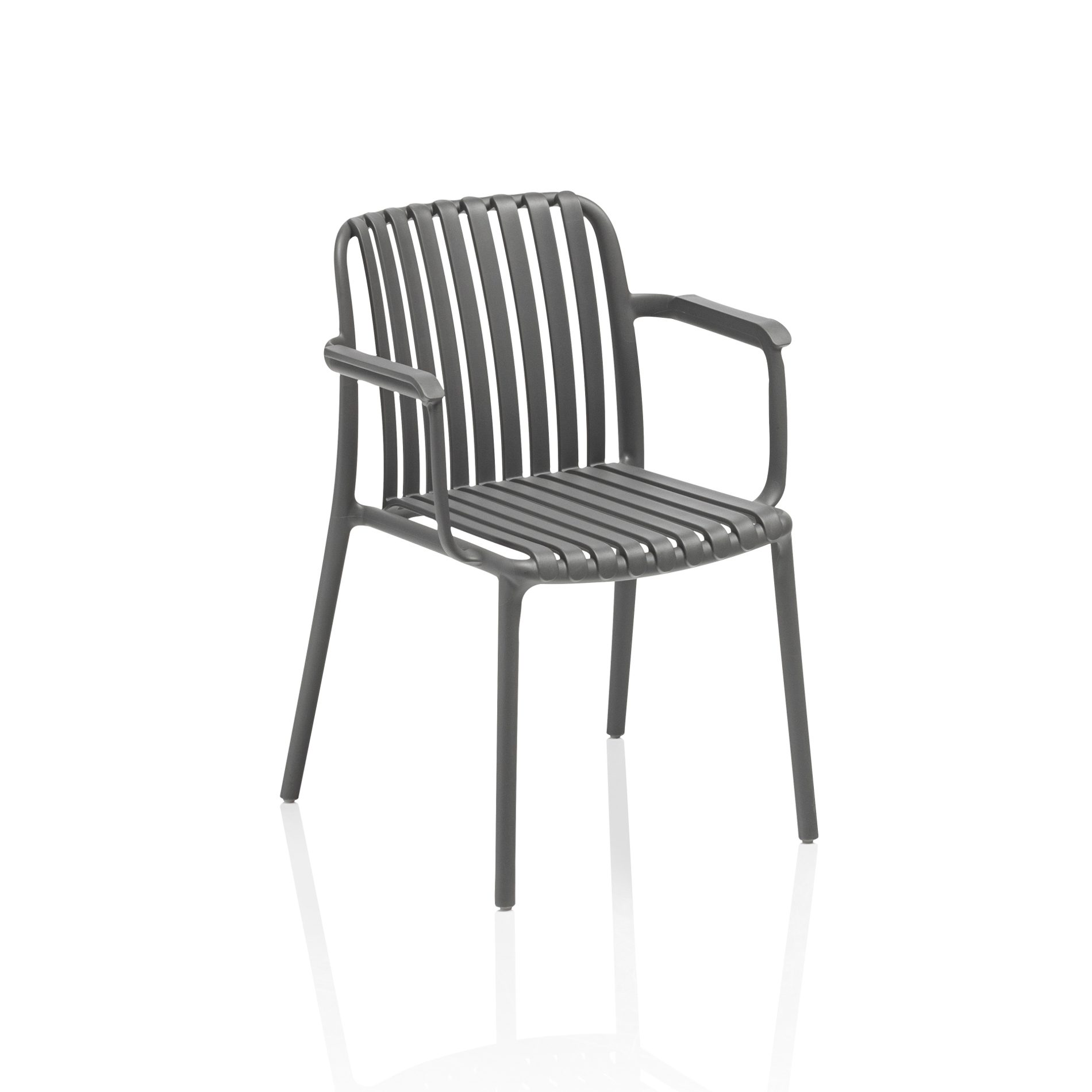 Die Rückenlehne, kunstvoll mit 16 mm breiten Rope-Bändern in Anthrazit bespannt, verleiht dem Stuhl eine moderne, luftige Optik und bietet gleichzeitig stabilen Halt. Das Outdoor-Material ist UV-beständig, wasserabweisend und komfortabel. Die wahlweise aus Teakholz oder Aluminium gefertigte Armlehnen sind ein zusätzlicher Hingucker und bieten angenehme Unterstützung bei langem Sitzen.